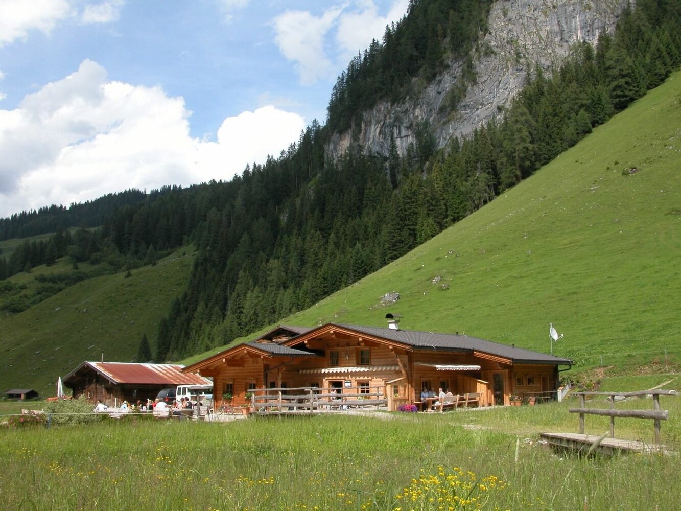 Opposite the Hotel Kröller (1,204 m) in Gerlos-Gmünd, hiking trail no. 6 starts in the Wimmertal with the lush green mountain pastures and the rushing Wimmerbach along the foothpath. After a short, somewhat steep ascent you will pass the snack station Klammer´s Jausenhütte (1.365m) an then finally, after half an hour of walking, you will reach the magnificently located at Wimmertalalm (1.375m). Fully restored, a further 300 altitude metres can then be tackled, even by less experienced hikers without any problems.