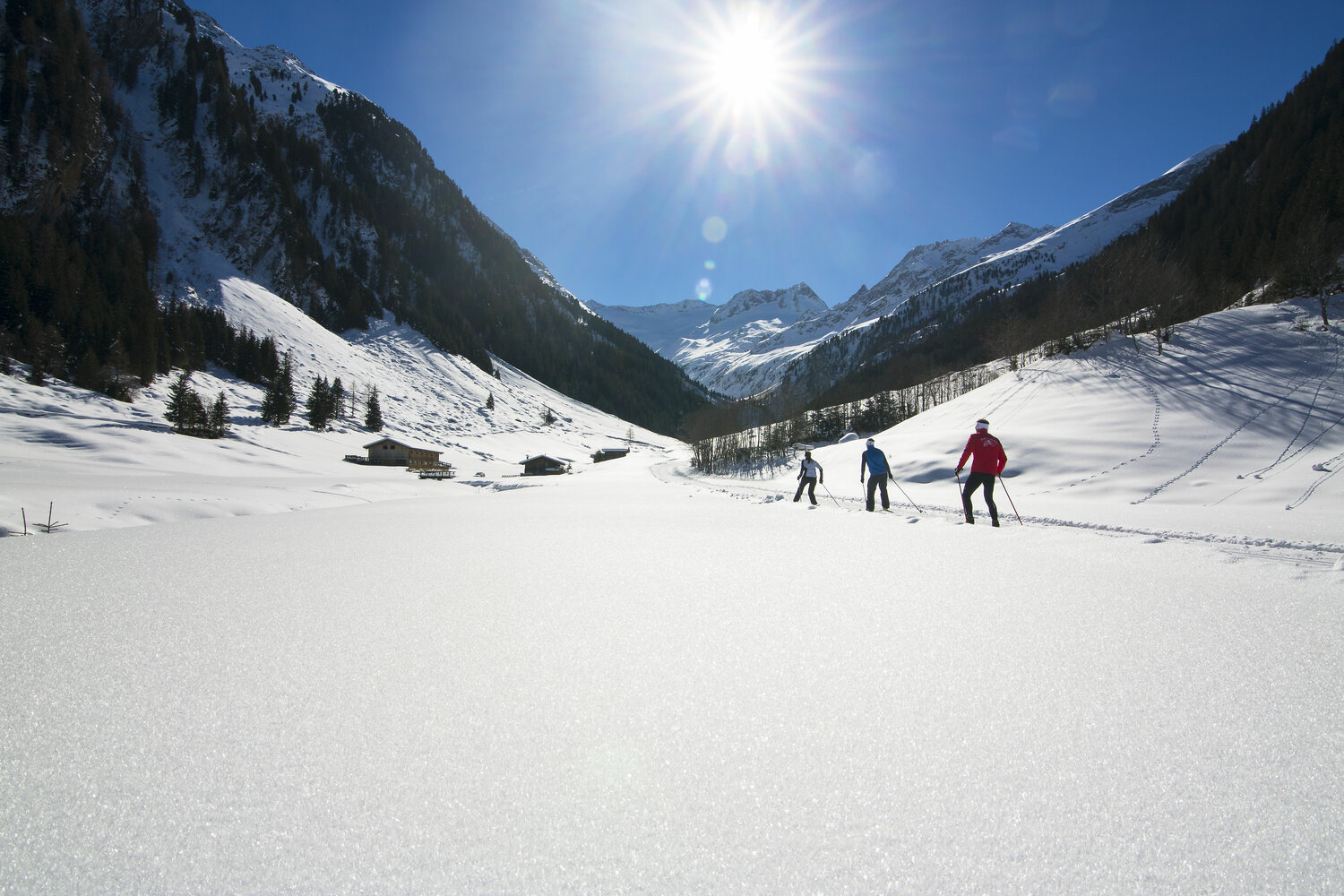 Der Parkplatz befindet sich am Eingang des Schönachtales. Von dort führt eine Verbindungsloipe (L2.5) ins Schönachtal. Dann breitet sich das Tal aus und die Loipe führt vorbei an der Jörgleralm und weiter bis zur Lackenalm.
