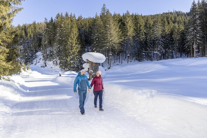 Der Erlebnisreichweg in Gerlos ist ein Wanderweg für alle Sinne und startet in Gerlos gegenüber vom Restaurant Jägerstüberl. Auch im winterlichen Kleid können Kinder und Erwachsene entlang des Weges lehrreiche Erfahrungen bei den Stationen und Skulpturen sammeln und die Natur auf sich wirken lassen. Die Winterwanderung abseits des Trubels inmitten der idyllischen Winterlandschaft entschleunigt und lädt zum Genießen und Träumen ein. Einkehrmöglichkeiten gibt es im Ort Gerlos.