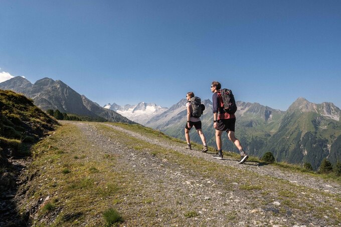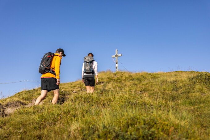 This circular trail starts in the Duxeralm district of Hochkrimml. From here, the path leads next to alpine meadows to the summit cross of Krimml's local mountain - the Plattenkogel. At the summit, in good weather, you have a magnificent view of the Hohe Tauern with the glaciated peaks, as well as in an easterly direction over the entire Salzach Valley and in a westerly direction into the Tyrolean Zillertal. The descent takes us in the direction of the Silberleiten district. On the way, you can make a short detour to the Gletscherblick Alm. From the Silberleiten you hike back to the starting point.