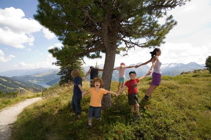 TIP for families: On the way back to the top station of the Isskogelbahn you will pass the „Kinderspielweg“ Latschenalm - a large area with information about animals and flowers on the pasture and much more. There is also a small zoo and a huge playground. In addition, a path leads up to the Latschensee, where you can risk a dip in the water on sunny days. Further highlights are the wooden marble runs and climbing elements directly at the mountain station.