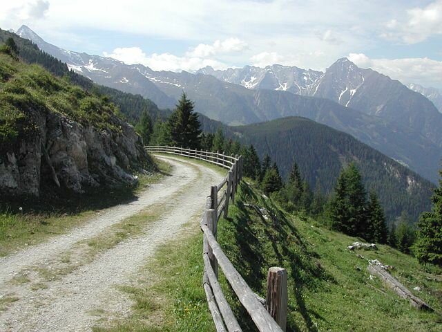 Walk above the station, where you come to an agriculturalroad. These road leads to the transmitter. But you turn right to the path which is well-marked. At the second ground you can see a lot of signs. Follow the right signed-trail to “Gerlosstein – Kotahorn-Alm”. Stay on the left path which leads you on a wide curve up to the path which levels out.