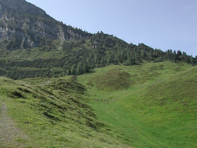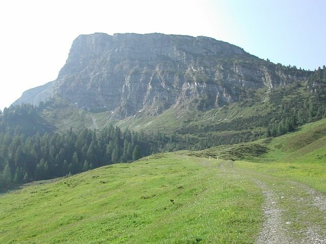 Walk above the station, where you come to an agriculturalroad. These road leads to the transmitter. But you turn right to the path which is well-marked. At the second ground you can see a lot of signs. Follow the right signed-trail to “Gerlosstein – Kotahorn-Alm”. Stay on the left path which leads you on a wide curve up to the path which levels out.