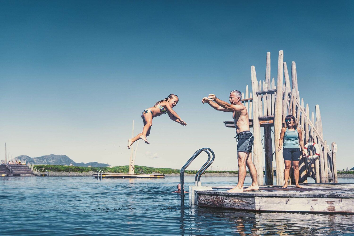 Mit dem Fichtensee kann man sich nun nach Spiel und Spaß im Fichtenschloss mit einem Sprung ins kühle Nass erfrischen – um danach direkt weiterzuspielen! Der kinderwagenfreundliche Fichtenweg verbindet das Fichtenschloss mit dem neuen Fichtensee. Eine Aussichtsplattform bietet Sicht auf die umliegende Bergwelt, ein Bootsverleih lädt zum Rudern ein und die Genussnischen und Schaukeln dienen der Entspannung.