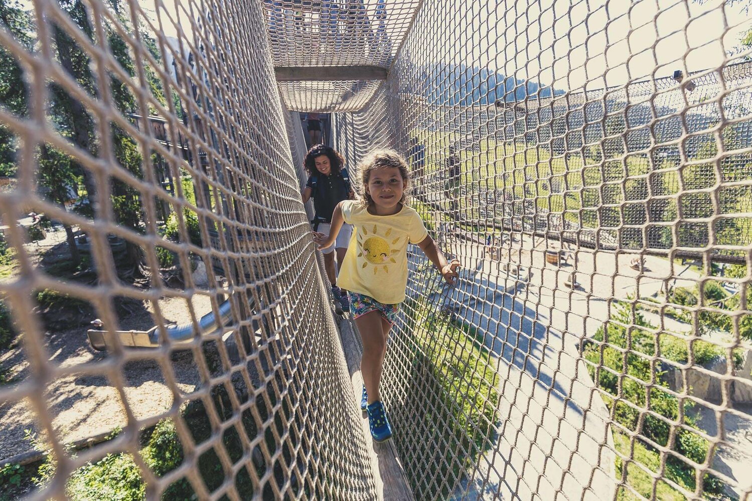 Bereits aus der Ferne sind die vier begehbaren Türme zu sehen, die ganz aus Holz majestätisch in den Himmel ragen. Große und kleine Gäste der Zillertal Arena können sich nun beim Kraxeln auf dem Kletterturm, beim Rutschen im Rutschenturm oder beim Werkeln im Kranturm, austoben. Den grandiosen Blick auf die umliegende Bergwelt genießt man am besten von dem 18 m hohen Aussichtsturm oder wagemutige Entdecker erkunden den Baumwipfelweg welcher vom Rutschenturm aus durch die angrenzenden Bäume führt. Neben einer Holzkugelbahn, dem großzügigen Wasser- und Sandspielbereich und einem Erlebnisspielplatz, finden kleine Baumeister in der Fichtenwichtelbauhütte und im Kranturm auch zahlreiche Möglichkeiten, das Werk der Fichtenwichtel fortzuführen. Nicht nur der Hängemattenwald bietet gemütliche Plätze um zu Rasten und die Seele baumeln zu lassen.