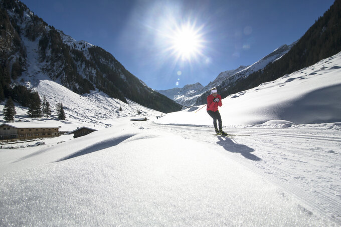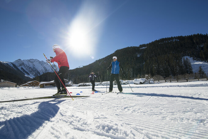 Gegenüber vom Bildungszentrum Gerlos (Parkmöglichkeit bei der Isskogelbahn !!!) steigen Sie direkt in die Loipe ein und laufen am Sportplatz vorbei in Richtung Innertal. Auf Höhe der Isskogelbahn führt eine Unterführung unter die Gerlosstraße (Achtung: Höhe 180 cm!). Am Gerlosbach entlang (700 m keine Skatingspur) führt die Loipe in die Funsingau. Am Rückweg können Sie auf Höhe Innertalerhof links über die Holzbrücke abbiegen und auf die Loipen ins Schönachtal wechseln.