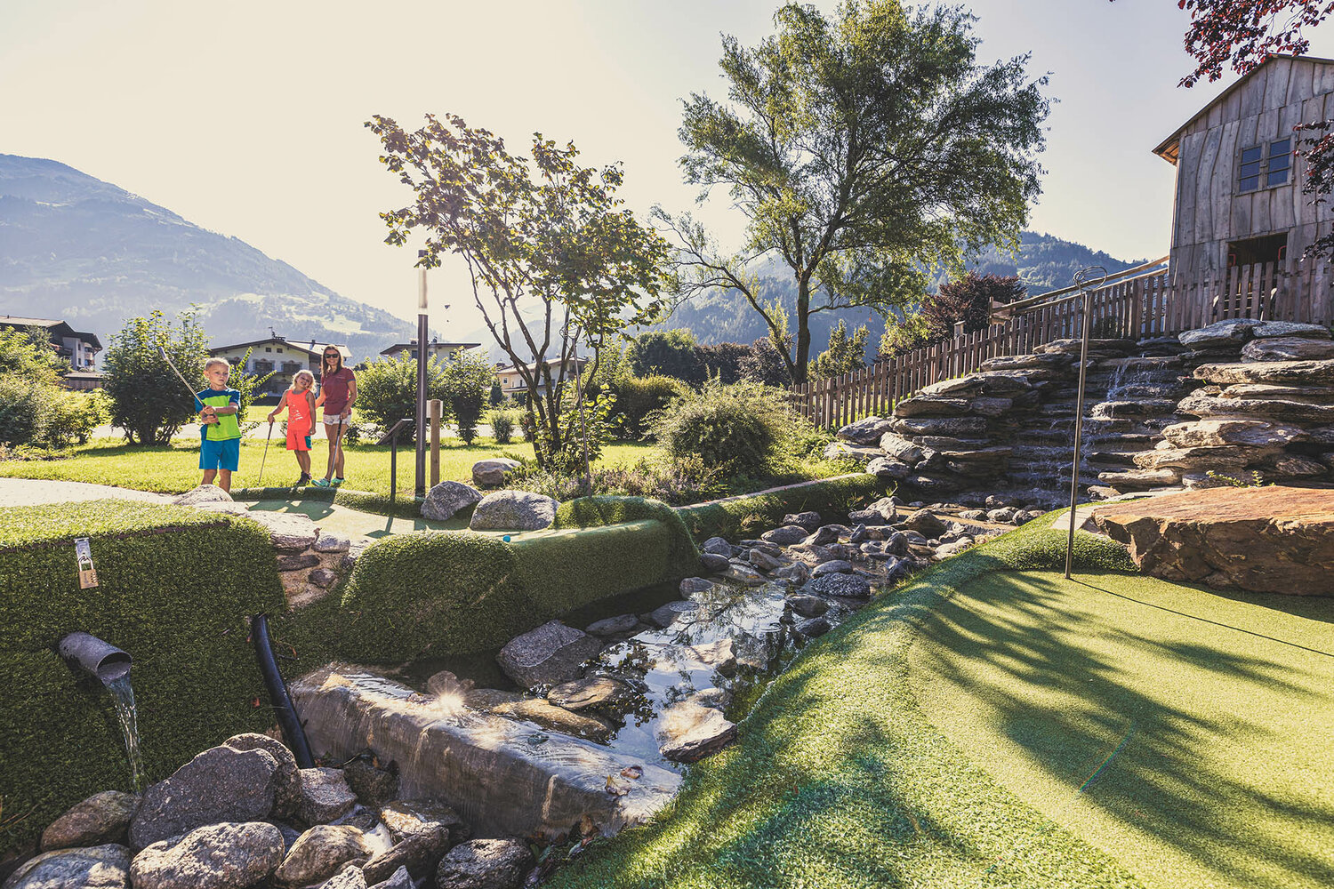 Der Freizeitpark Zell wurde im Sommer 2018 komplett neu gestaltet. Auf einer Fläche von über 45.000 m² finden Sie alle erdenklichen Freizeitmöglichkeiten für Groß & Klein. Ein besonderes Highlight ist der Abenteuer-Minigolfplatz „Die Schätze des Zillertals“. Minigolf mal ganz anders. Mit dem Golfball kann sich jeder auf eine kleine Reise durch die Besonderheiten des Zillertales begeben. Jede der 18 Bahnen thematisiert einen Schatz des Zillertals. Der Abenteuer Minigolfplatz ist der einzige in ganz Westösterreich seiner Art. Es wird unter anderem durch Hindernisse in Käseform oder einer Bergbahn gespielt. Kunstvoll geschnitzte Holzfiguren zeigen unter anderem Trachten oder althergebrachtes Werkzeug.